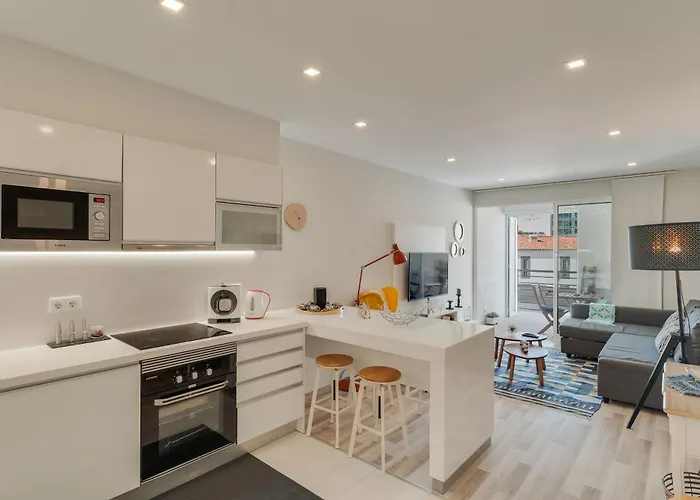 Поряд зі зручностями для самостійного приготування їжі, такими як обладнана кухня, це помешкання пропонує гостям обідню зону і їдальню на відкритому повітрі. Автобусна зупинка Rua Infante Santo знаходиться на відстані 10 хвилин пішки.